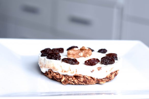 Ihr braucht 30g grobe Haferflocken 4 Datteln Milch Magerquark koawach Kakaopulver (Orange) Toppings eurer Wahl So geht´s Zuerst die Datteln im Mixer vermixen. Wenn ihr kein Mixer zu Hause habt, könnt ihr auch ein Pürierstab verwenden. Dann die Haferflocken und Daten mit der Gabel (oder Hand) etwas kneten. Nun mischt…